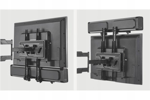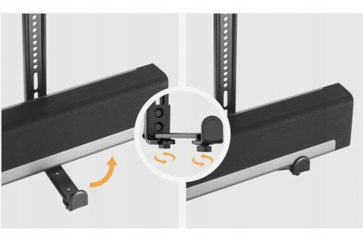 Uniwersalny uchwyt do głośnika soundbar z możliwością montażu do telewizora lub do uchwytu telewizora.