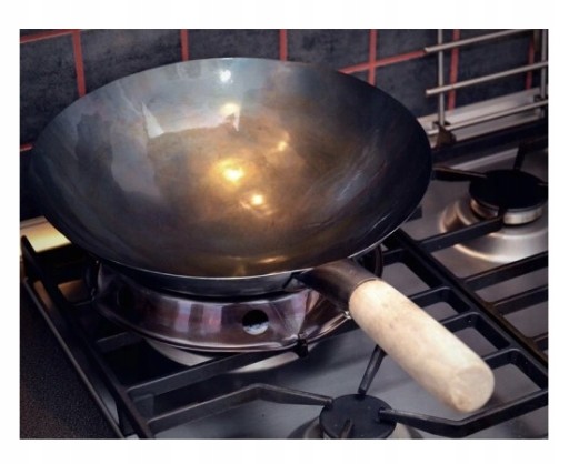 Przed pierwszym użyciem należy WOK odpowiednio przygotować, aby uniknąć przywierania przyrządzanych potraw w trakcie smażenia. Umyć WOK ręcznie, z użyciem niewielkiej ilości płynu do mycia naczyń, następnie wypalać na bardzo dużym płomieniu, aż całkowicie zniknie warstwa pokrywająca blachę. Zawsze myć ręcznie unikając myjących substancji ściernych.