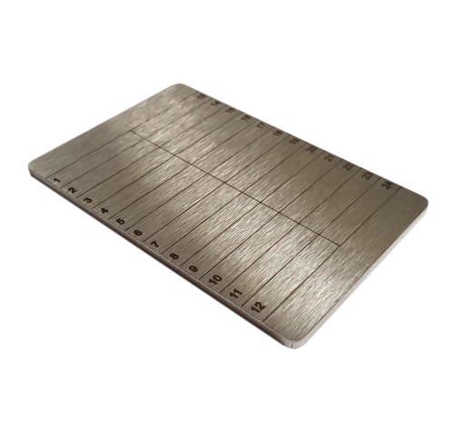 Nakamoto składa się z płytki ze stali nierdzewnej (AISI 304). Oprócz żelaza ten typ stopu zawiera 18% chromu do utleniania i odporności na korozję oraz 8% niklu. Płyta, na której stemplują Państwo nasiona, ma grubość 3 mm, dzięki czemu zapewnia wystarczającą powierzchnię ochronną dla nasion.