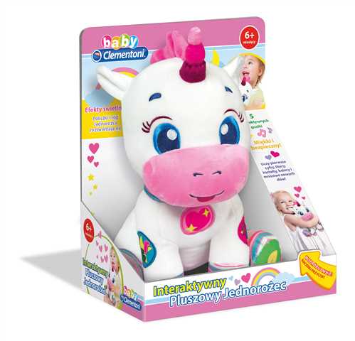 Słodziutki interaktywny pluszowy jednorożec, mięciutki i bezpieczny dla maluchów już od 6 m-ca życia.