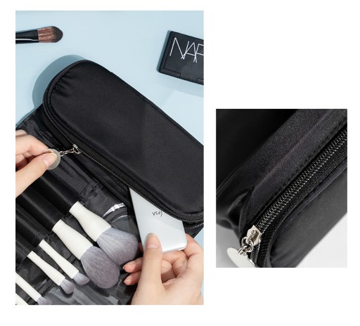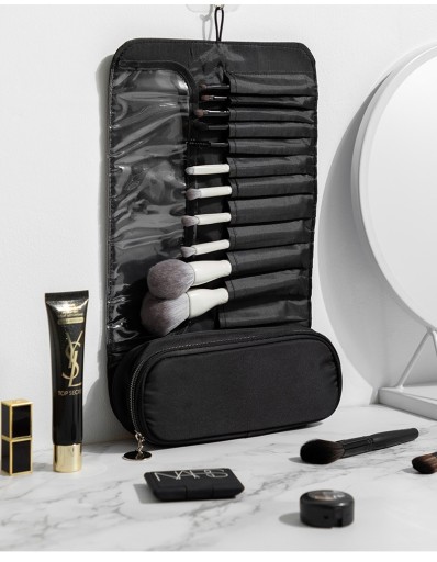 -12 kieszonek o różnej szerokości idealnie nadaje się do przechowywania pędzli do makijażu, tuszu do rzęs, kredki do oczu czy eyelinera. Kieszonki pomieszczą nawet 30 pędzli o cienkim trzonku. Kosmetyczka posiada również zakładkę chroniącą włosie przed zabrudzeniem i odkształceniem.