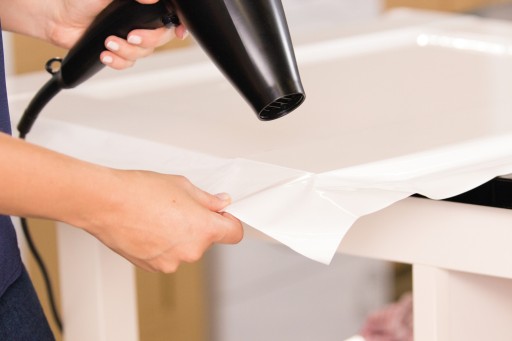 ➔ Tak! Aby osiągnąć odpowiedni kształt, należy delikatnie podgrzać okleinę suszarką do włosów (ustawiona najniższa moc grzania), następnie przyłożyć folię do krawędzi i delikatnie docisnąć. Gdy folia jest podgrzana, można łatwo ją formować i nadać jej pożądany kształt. Należy jednak postępować ostrożnie, aby nie przegrzać folii.