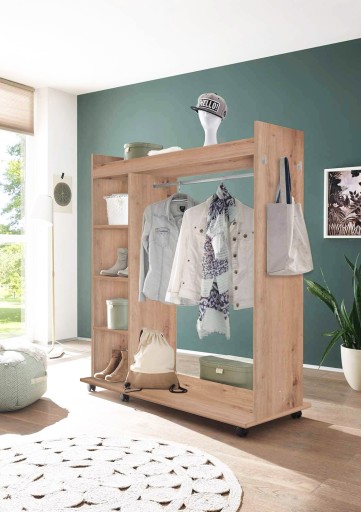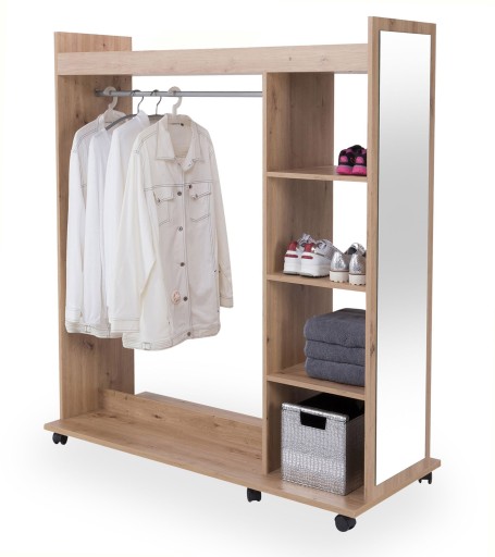 ✔️ Przestronne funkcje przechowywania: otwarte półki oraz drążek na odzież