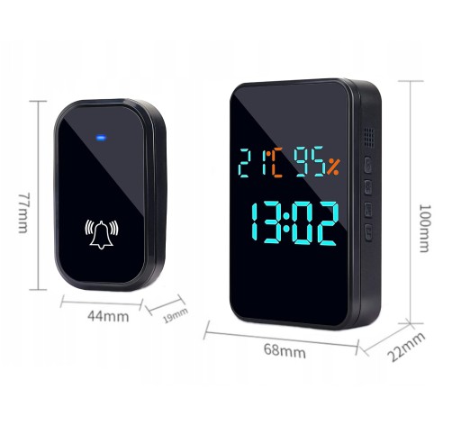 БЕСПРОВОДНОЙ, ДВЕРНОЙ ЗВОНОК БЕЗ АККУМУЛЯТОРОВ, ТЕМПЕРАТУРА, 2 КНОПКИ