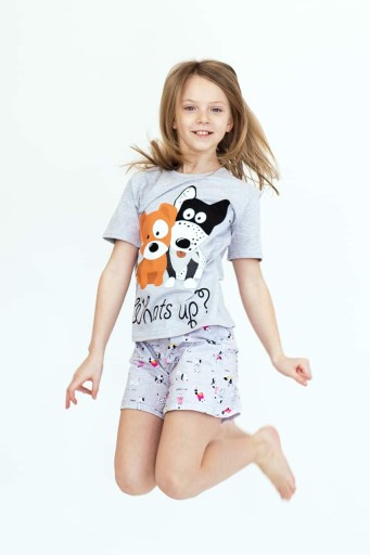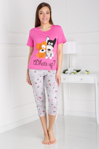 Nasza piżama składa się z spodni za kolana oraz bluzki na krótki rękaw, cały komplet posiada słodkie nadruki w zwierzaki.
