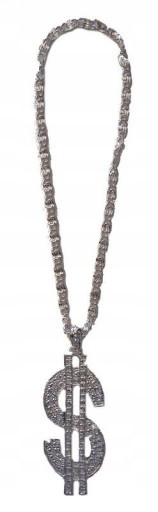Naszyjnik Dolar w kolorze srebrnym to najlepszy dodatek do Pimp, gangstera lub w stylu kicz party!