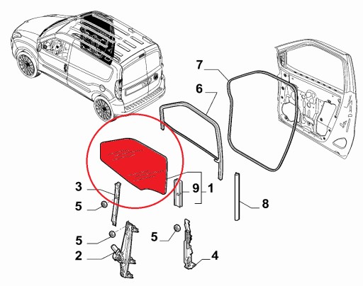 Стекло правой двери Fiat Doblo