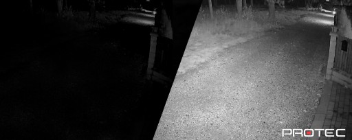 Promiennik podczerwieni kamer Protec uruchamia się automatycznie kiedy jest za mało światła. Takie rozwiązanie pozwala na skuteczną obserwację obszaru bez obaw, że jakiś fragment terenu pozostanie niewidoczny.