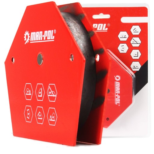 Kątownik magnetyczny sześciokątny o udźwigu 25 kg znacznie ułatwia prace przy spawaniu, montażu konstrukcji metalowych, lutowaniu, trasowaniu oraz unoszeniu elementów stalowych i wielu innych czynnościach. Posiada mocny magnes o dużej powierzchni obudowany metalowymi płytkami, który umożliwi precyzyjne i trwałe ułożenie materiału pod kątami: 30°, 45°, 60°, 75°, 90°, 135°. Magnesy pozwalają na łatwe mocowanie do metalowych powierzchni, co zapewnia stabilność i dokładność pomiarów. Sześciokątna konstrukcja powoduje, że kątownik jest łatwy w użyciu i umożliwia szybkie i dokładne określenie kąta pomiędzy dwoma powierzchniami. Jest to szczególnie przydatne podczas wykonywania precyzyjnych cięć i montażu elementów w miejscach trudno dostępnych. Jest to niezastąpiony pomocnik dla fachowców oraz dla amatorów, którzy chcą wykonać swoje prace samodzielnie i z precyzją, nie bez powodu nazywany "trzecią ręką". Można użyć kilku kątowników jako zestawu.