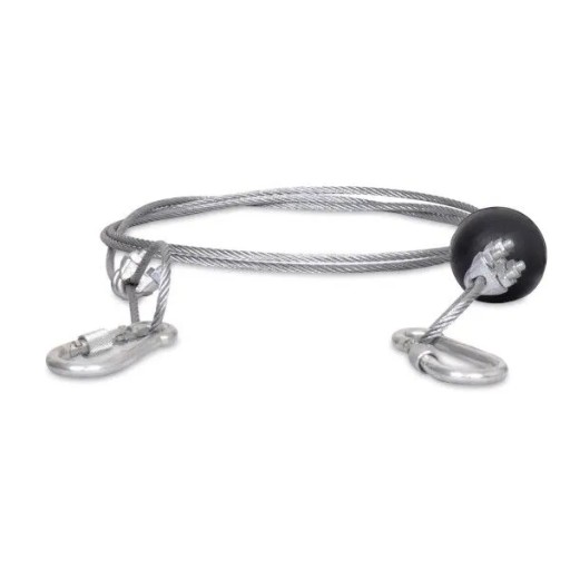 Aby zabezpieczyć kółko przed uszkodzeniami podczas zbyt gwałtownego puszczania drążka po zakończeniu ćwiczenia, koniec linki wyposażyliśmy w gruby, gumowy, odbojnik w kształcie kuli.