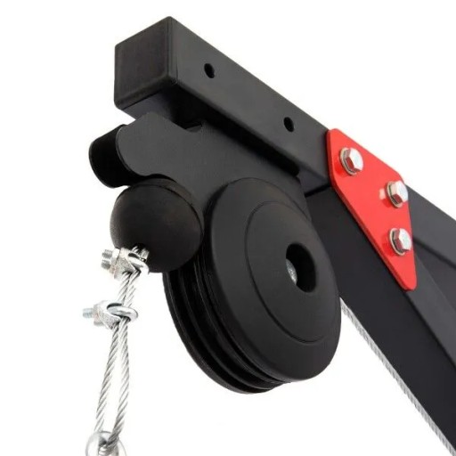 Obciążenie w wyciągu wyregulujesz przy użyciu uniwersalnych krążków, które nałożysz na pręt, wydłużony dla Twojego komfortu do 46 cm. Przy pomocy karabińczyka w prosty i bezpieczny sposób zaczepisz je do linki. Dzięki zastosowaniu rurki o średnicy 22 mm, możesz użyć każdego dostępnego na rynku obciążenia.