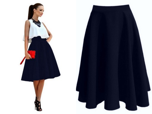 ELEGANCKA SPÓDNICA z KOŁA ROZKLOSZOWANA MIDI ROZKLOSZOWANA