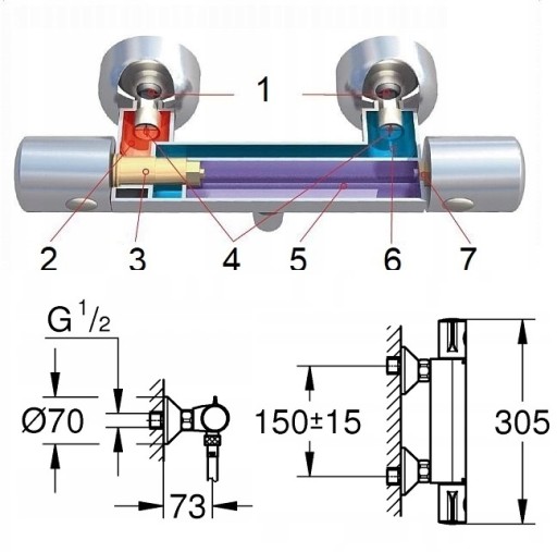 Rysunek podglądowy zasady działania baterii termostatycznej: