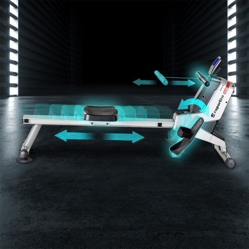 Wioślarz inSPORTline Yukona posiada system koła zamachowego o wadze 6 kg, 16 stopni obciążenia i bardzo cichy magnetyczny system oporu, który jest bardzo łatwy w utrzymaniu. Dzięki minimalnemu poziomowi hałasu nie będziesz nikomu przeszkadzać podczas ćwiczeń. Ważnym elementem jest również wygodne, miękkie siodełko, pokryte sztuczną skórą. Długość ruchu siedziska wynoszący 94 cm umożliwia wygodne ćwiczenie.