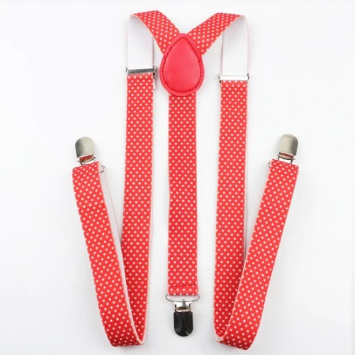 Подтяжки для брюк МУЖСКИЕ, красный и белый горошек