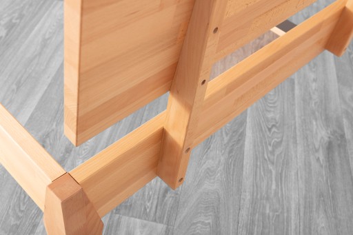 - Rama i zagłówek wykonane z litego drewna bukowego zabezpieczonego olejowoskiem,