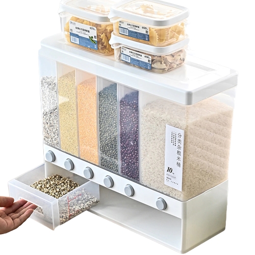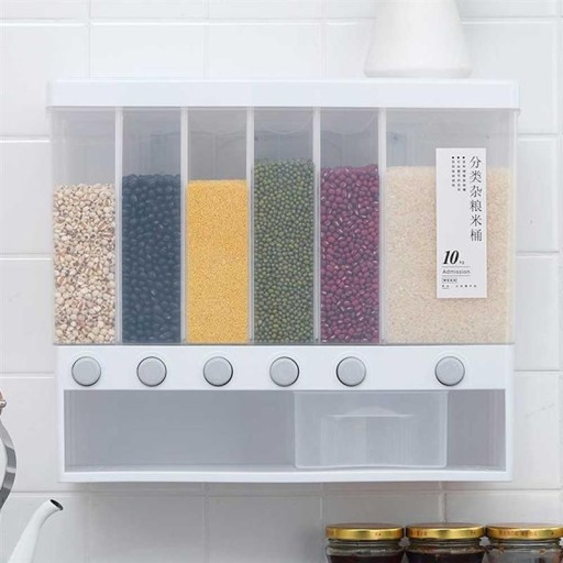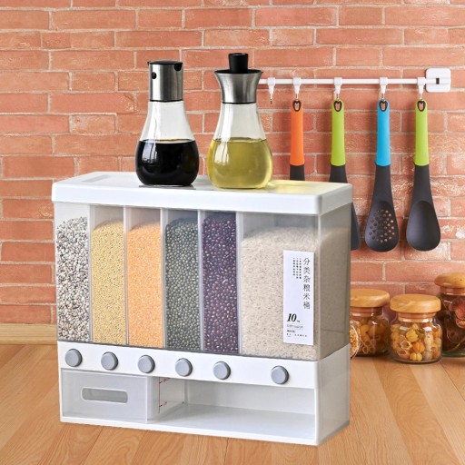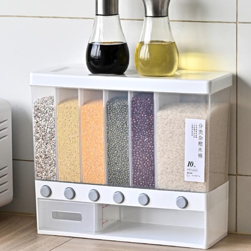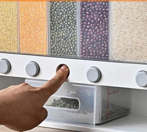 Wiele przegród umożliwia przechowywanie wielu zbóż do codziennego użytku i łatwe dozowanie w razie potrzeby.