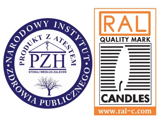 Nasze świeczki są całkowicie bezzapachowe, nie wytwarzają dymu oraz sadzy. Świeczki posiadają atest PZH i certyfikat RAL, świadczący o tym że produkt jest najwyższej jakości i nie mają negatywnego wpływu na zdrowie. Nie mają w składzie siarki i metali ciężkich.