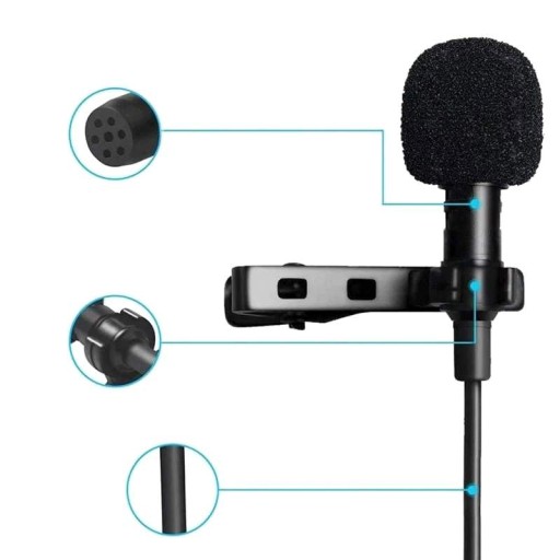 - Mikrofon krawatowy z kablem zakończonym złączem Lightning - 150 cm