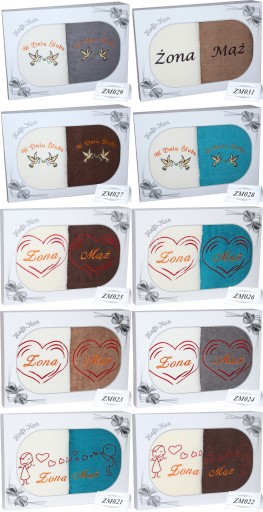 Każdy zestaw ręczników zapakowany jest w ozdobne pudełko z okienkiem prezentującym wnętrze - zestaw tworzy gotowy prezent do podarowania bez potrzeby dalszego pakowania.