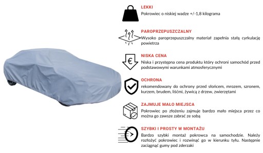 Powłoka pokrowca całkowicie bezpieczna dla lakieru i karoserii.