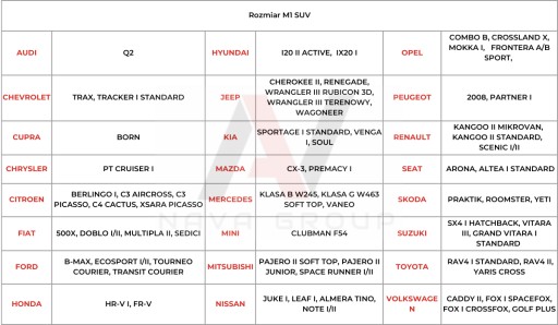 Rozmiar pokrowca: M1 Minivan/Suv