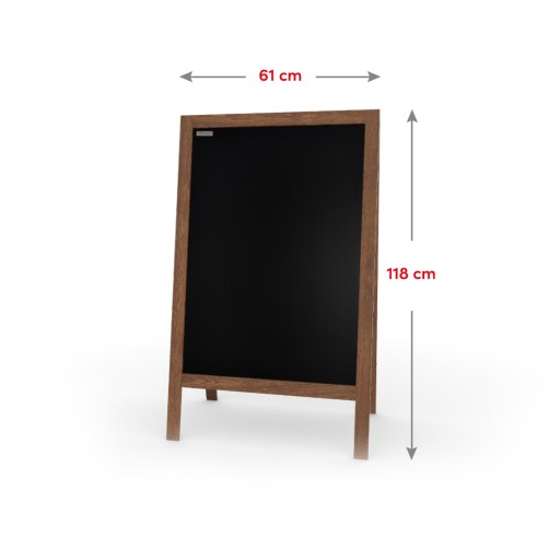 - POWIERZCHNIA - potykacz wyposażony jest w czarną, kredową tablicę do pisania, wykonaną z płyty HDF o wysokiej gęstości. Jest bardzo trwała, można po niej pisać kredą oraz markerami kredowymi. Płyta znajduje się z obu stron produktu, co czyni go dwustronnym!