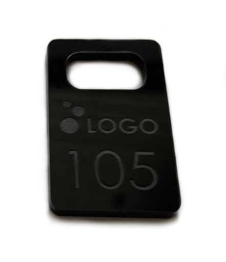 - Na breloku możemy wygrawerować dowolną treść: logo, numerację, nazwę firmy, telefon, adres itp.
