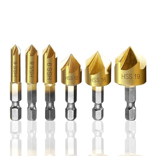 6-ELEMENTOWY ZESTAW POGŁĘBIACZY STOŻKOWYCH NA WIERTARKĘ