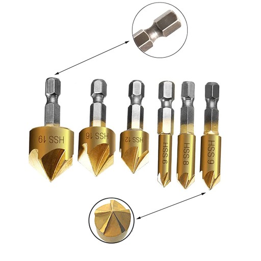 » Zestaw 6szt. pogłębiaczy stożkowych z pięcioma ostrzami o kącie 90°