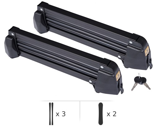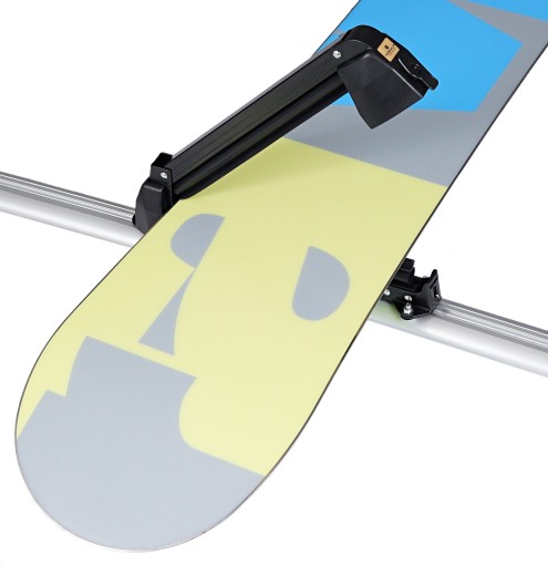 Montaż sprzętu zimowego odbywa się poprzez umieszczenie go pomiędzy dwoma elastycznymi gumowymi szczękami. Uchwyt wyposażono w zabezpieczenie antykradzieżowe w postaci zamka z kluczem.