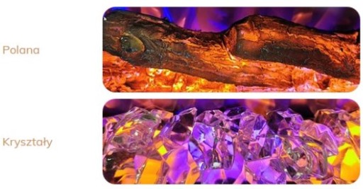 2 rodzaje paleniska w zestawie: polana, kryształy.