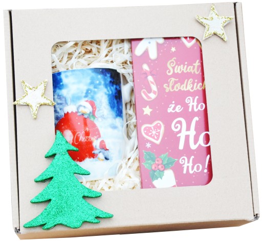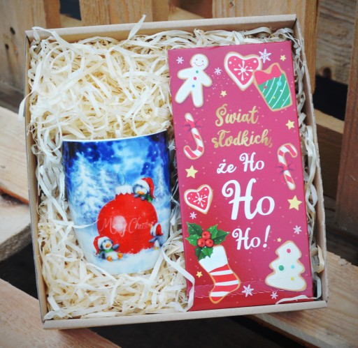 Piękny i praktyczny prezent na Święta Bożego Narodzenia - zestaw na zimowe wieczory - piękny kubek + świąteczna czekoladka. Całość pięknie ozdobiona i zapakowana. Doskonały prezent pod choinkę dla najbliższych, znajomych, szefa, szefowej, wychowawczyni.