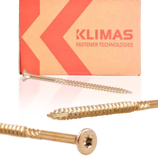 - Wkręt konstrukcyjny z łbem stożkowym i gniazdem do połączeń elementów drewnianych i drewnopochodnych w konstrukcjach drewnianych.