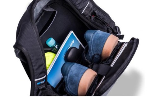 Aerodynamiczny, opływowy kształt zmniejsza powstawanie turbulentnego powietrza i jego opór przy większych prędkościach. Zamek błyskawiczny zapewnia dostęp do plecaka jedynie od strony pleców. Tam też umiejscowiona została zewnętrzna kieszeń na dokumenty, telefon lub inne drobne przedmioty.