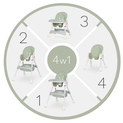 - Wersje krzesełka: 4w1 - cztery krzesełka w jednym
