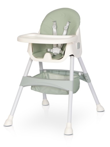 Wysokie wolnostojące krzesełko do karmienia – W tej konfiguracji krzesełko posiada długie nogi oraz zamontowaną tackę. Wysokie krzesełko zapewnia większą wygodę rodzicowi karmiącemu dziecko oraz sprawia, że dziecko znajduje się na podobnej wysokości co jego rodzice zasiadający przy stole. Dzięki regulowanej tacce, krzesełko nie musi być ustawiane przy stole, więc wygodnie nakarmisz je w każdej sytuacji.