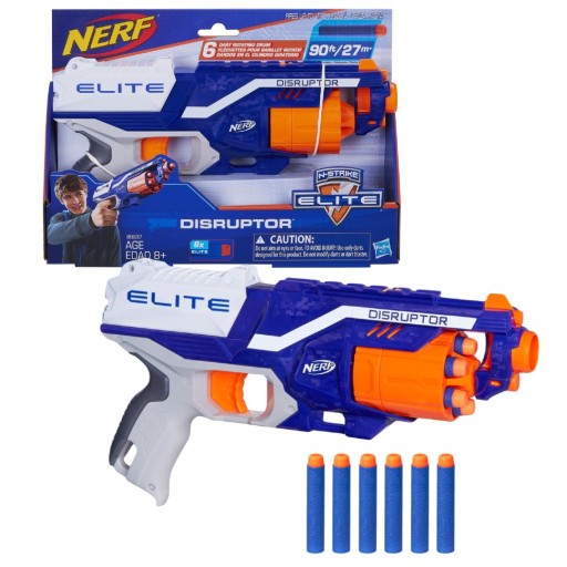 Nerf Disruptor to nowa wersja Strongaram czyli najbardziej popularnej wyrzutni Nerf wszech czasów! Projektanci Nerfa zostawili tu wszystko co dobre i poprawili niedociągnięcia poprzednika. Disruptor nadal wygląda jak rewolwer, ma bębenkowy magazynek na 6 strzałek i tryb pojedynczego oraz ciągłego ognia. Zdecydowanie lepszy jest jednak zasięg nowej wyrzutni bo aż 27 metrów (średnia Strongarma to 19 metrów, a maksymalnym zasięg 23 metry). Dodatkowo teraz nie wysuwamy magazynku w bok tylko wkładamy strzałki bezpośrednio od przodu co znacznie ułatwi ładowania podczas bitew Nerf. Disputor jest też trochę większy dzięki czemu lepiej leży ręce. Wszystko to sprawia, że jest to jeden z najlepszych wyborów na pierwszą wyrzutnie Nerf!