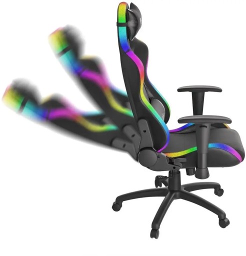 - Ergonomiczny fotel dla graczy ze zdalnie sterowanym podświetleniem RGB z ponad 300 efektownymi trybami oraz z możliwością regulacji prędkości i jasności efektów