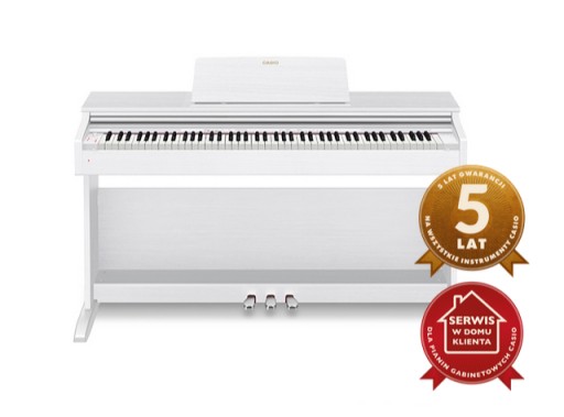 CASIO AP-270 to domowe pianino cyfrowe posiadające 88 dynamicznych klawiszy z ważoną mechaniką młotkową Tri-sensor Scaled Hammer Action Keyboard II. Model ten dobrze odwzorowuje grę na fortepianie i posiada trzy stopnie czułości klawiatury. Dzięki funkcji Duet Mode umożliwiającej podział klawiatury na dwie równe części, spełnia walory edukacyjne - na jednej połowie klawiatury może grać nauczyciel, na drugiej uczeń. Dzięki zastosowaniu materiałów oraz technologii najwyższej jakości gwarancja na instrument wynosi aż 5 lat a ewentualny serwis odbywa się w domu klienta - bez konieczności wysyłania pianina.