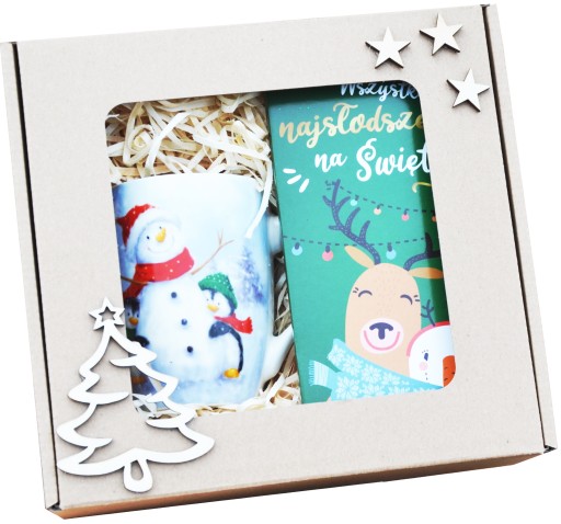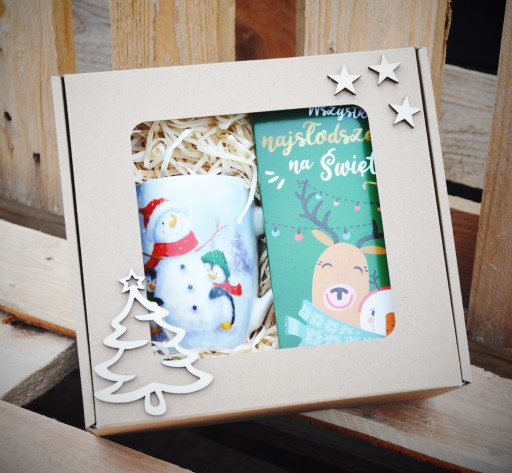 Piękny i praktyczny prezent na Święta Bożego Narodzenia - zestaw na zimowe wieczory - piękny kubek + świąteczna czekoladka. Całość pięknie ozdobiona i zapakowana. Doskonały prezent pod choinkę dla najbliższych, znajomych, szefa, szefowej, wychowawczyni.