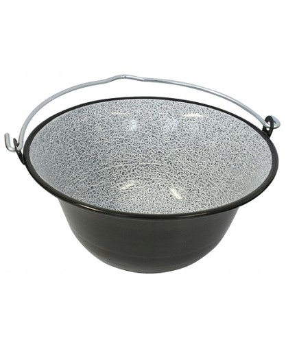 - Wysokiej jakości kociołek emaliowany 13 litrowy, doskonale nadający się na piknik, dłuższą wyprawę, kemping, łatwy do podwieszenia na trójnogu