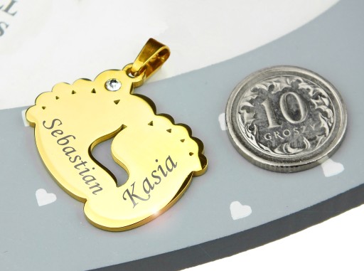 Zawieszka wykonana jest ze stali szlachetnej typu 316L w kolorze złotym. Bardzo dobra jakość wykonania. Powierzchnia zawieszki jest idealnie gładka, wypolerowana na wysoki połysk. Jakością dorównuje wyrobom z czystego złota.
