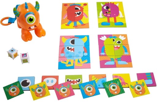Gra towarzyska dla dzieci, z pewnością zachęci maluchy do zabawy. Użyj potworkowej kostki z sześcioma obrazkami i wybierz jedną z układanek potworków. Ułóż potworka twarzą do góry i porozkładaj losowo wszystkie karty z częściami ciała potworka. Sprawdź jaką część ciała wylosuje kostka i odwróć kartę do góry nogami. Gra kończy się, gdy cały potworek będzie odwrócony!