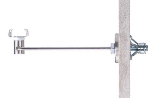 Gotowy zestaw elementów do zamocowania w płycie kartonowo-gipsowej lekkiej oprawy oświetleniowej. Zawieszka wyposażona jest w MOCOWNIK PDS. Zapewnia też możliwość regulacji kąta, pod jakim zamocowana jest oprawa. Do ściany przytwierdzona jest na PRĘCIE FI-3, zakończonym kołkiem rozporowym do karton-gipsu.
