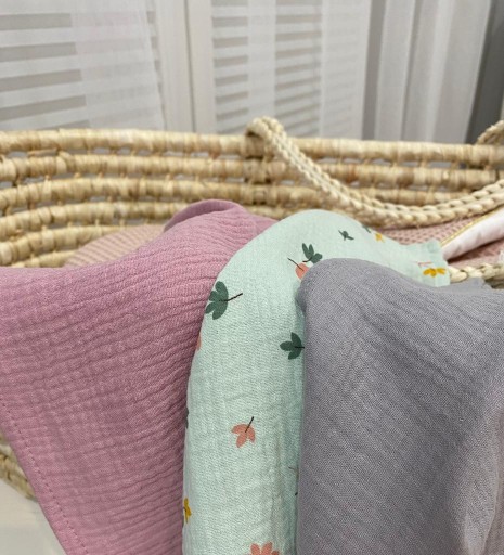 Pieluszka z muślinu organicznego idealnie sprawdzi się w wyprawce dla niemowlęcia. Bawełna muślinowa jest delikatna, przewiewna i chłonna, dzięki czemu idealnie nadaje się dla delikatnej skóry noworodka podczas zabiegów pielęgnacyjnych. Dzięki swojej delikatności sprawia że wspaniale się sprawdza jako przytulanka przy zasypianiu.
