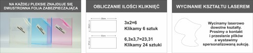- Płyta przezroczysta o wymiarach 100x100 mm (przy innych wymiarach liczymy z pola powierzchni np 50x30cm = 1500cm2 czyli wybieramy 15 sztuk na aukcji. Elementy o wymiarze mniejszym niż 10 cm wyceniamy indywidualnie.