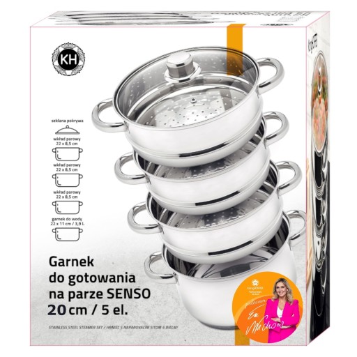 Produkt kompatybilny z kuchenkami gazowymi, indukcyjnymi, elektrycznymi i ceramicznymi. Wygodne i zdrowe gotowanie mięs, warzyw, ryb i wielu innych składników. Trwała konstrukcja ze stali nierdzewnej. Proste zasady użytkowania (po wyciągnięciu wkładów parowych można korzystać z tego produktu jak z tradycyjnego garnka). Model w zestawie ze szklaną pokrywką. Poręczne stalowe uchwyty oraz atrakcyjna pojemność. Produkt ma rekomendację Ewy Wachowicz. Jako ambasadorka marki Konighoffer, gorąco i z uśmiechem poleca go ona do domowego użytku. Razem z nim zdobędziesz twój przepis na dom. To jedna z najlepszych opcji w tej kategorii!