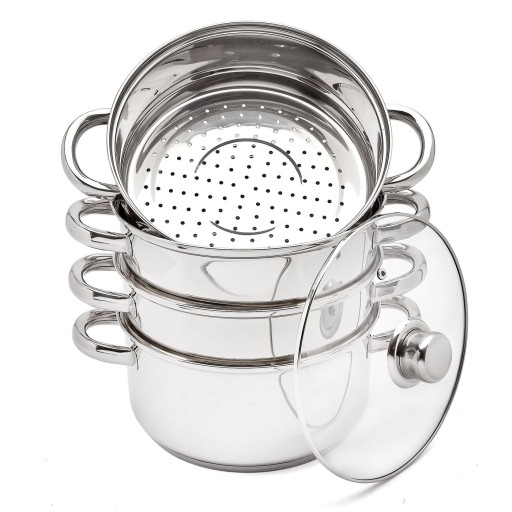 - garnek do wody, - 3 wkłady parowe, - pokrywka