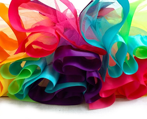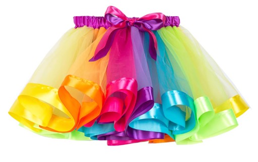 - tęczowa tiulowa spódniczka Tutu - w pasie gumeczka, atłasowa lamówka i kokardka, składająca się z nakładających się na siebie pasów tiulu, pięknie się układa - idealna na rajstopki lub leginsy
